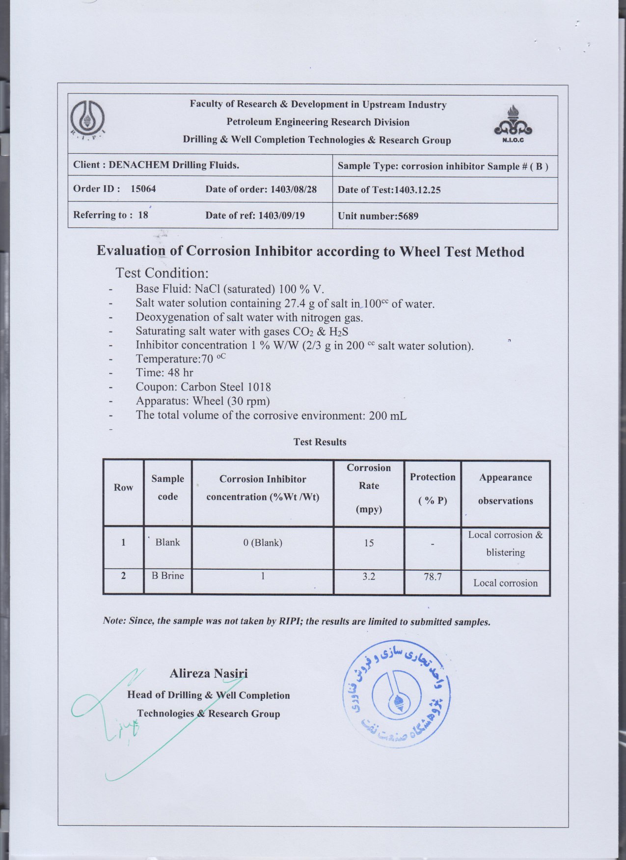 DenCor 303 is a high-performance corrosion inhibitor designed specifically for use in brine-based drilling fluids. This product contains mix of gluconate salts and derivatives, which effectively protects metals against corrosion in challenging drilling conditions. The formulation protects against corrosion caused by brine solutions commonly used in drilling, completion, and workover operations.
